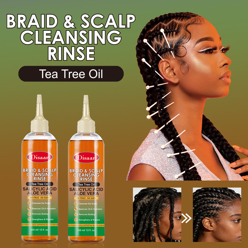 The Disaar Braid and Scalp Cleansing Rinse Series is specifically formulated for consumers who wear braids twists locs wigs or other long term protective styles. Unlike traditional shampoos that require full wetting and manipulation of hair, this rinse system focuses on targeted scalp cleansing along parting lines, helping maintain scalp health while extending the lifespan of braided hairstyles.
