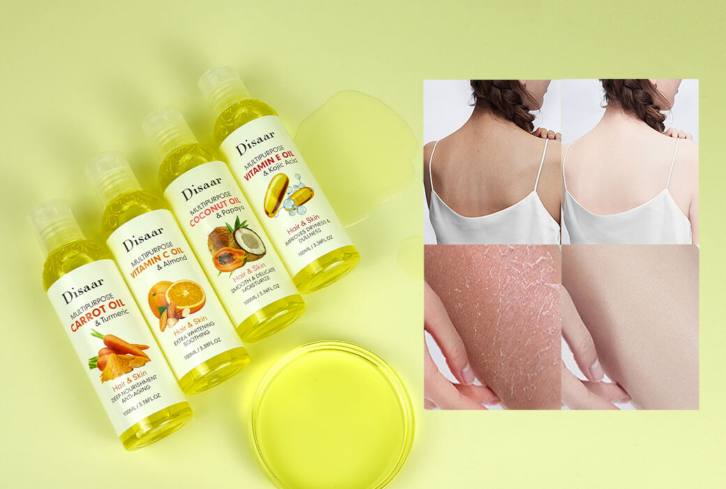 This is a multipurpose natural oil series built for buyers who need everyday moisturizing, brightening, and repair support for both hair and skin. The formula direction for this series is enriched with natural extracts that rapidly infiltrate into skin, moisturize, whiten, replenish nutrients, relieve dry skin, lighten fine lines & spots, easily get absorbed without oiliness, and can effectively fix multiple skin problems.