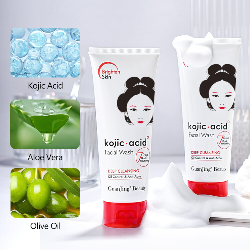 La Serie GuanJing Ácido Kójico 7 Días Blanqueamiento Rápido es una solución integral para el cuidado facial y corporal desarrollada para mercados con alta demanda de efectos visibles de aclarado, tono uniforme y hidratación. Basada en el ácido kójico, un ingrediente ampliamente reconocido por sus propiedades aclarantes, la serie integra limpieza, tratamiento, protección y cuidado corporal en un sistema unificado de blanqueamiento.