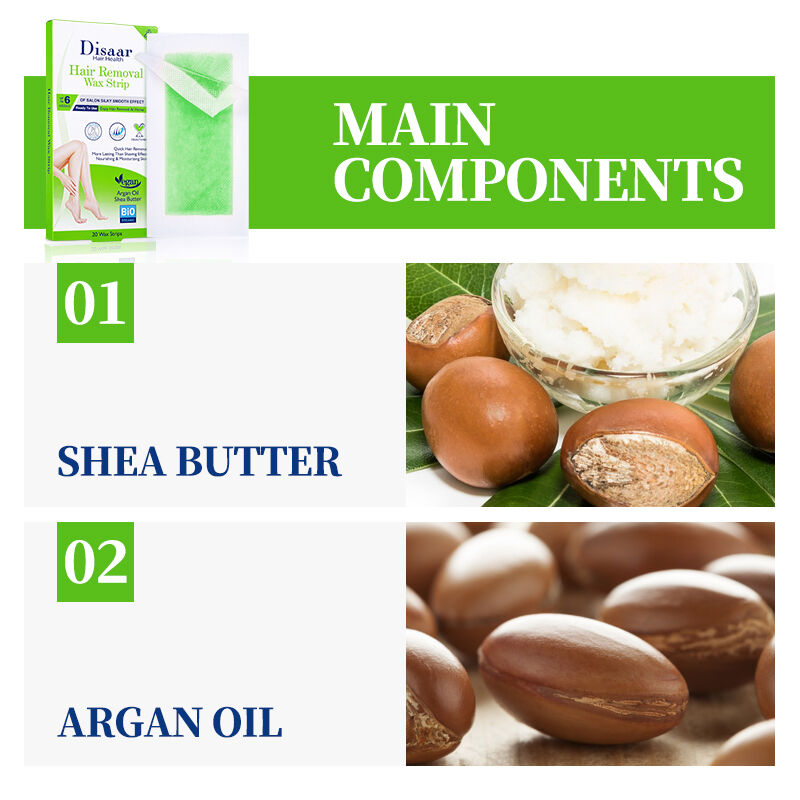 - Масло ши и аргановое масло: Масло ши богато жирными кислотами и витаминами, которые глубоко питают и восстанавливают сухую кожу; аргановое масло усиливает способность кожи удерживать влагу, образует защитную плёнку на поверхности кожи и предотвращает сухость, вызванную эпиляцией.